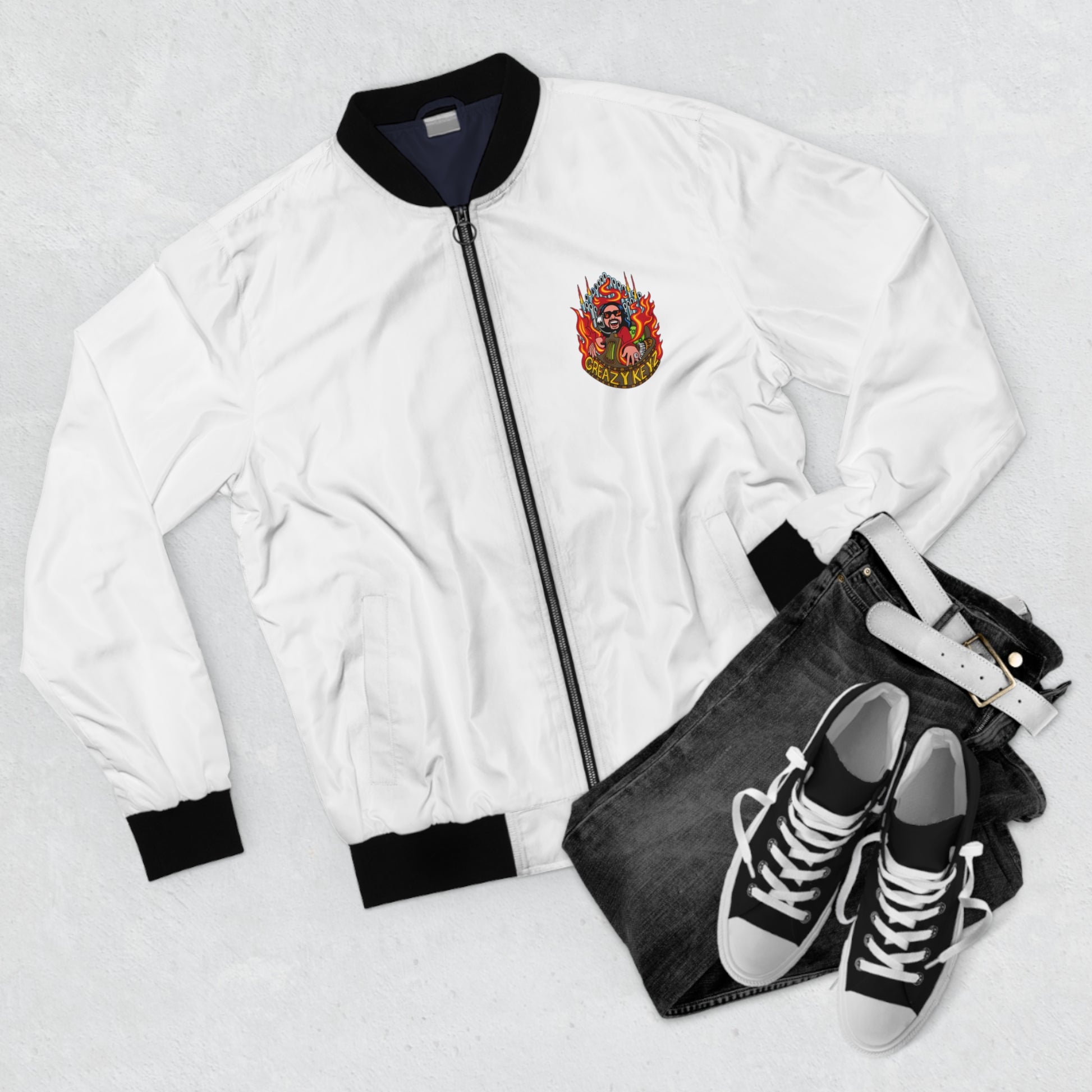 Buzz Gibson design Greazy Keyz Men's Bomber Jacket (AOP)